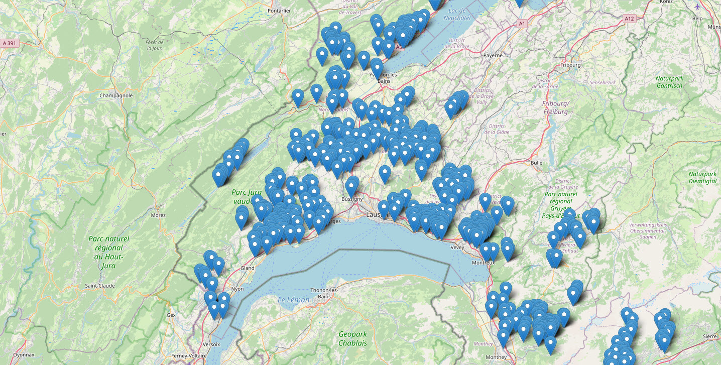 Carte des stations en Suisse romande